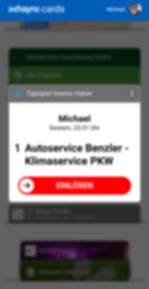 Der Eintrag muss bei Einlösung des Gewinns vorgezeigt werden. Der Gutschein wird dann vom Anbieter mit einem Swipe nach Einlösung entwertet.